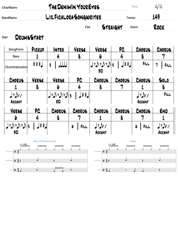 Try playing and reading a chart. Download the pdf of the chart and use the Spotify link to listen to the track and play along. This song was written by Liz Ficalora and produced in her studio. Enjoy!