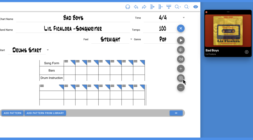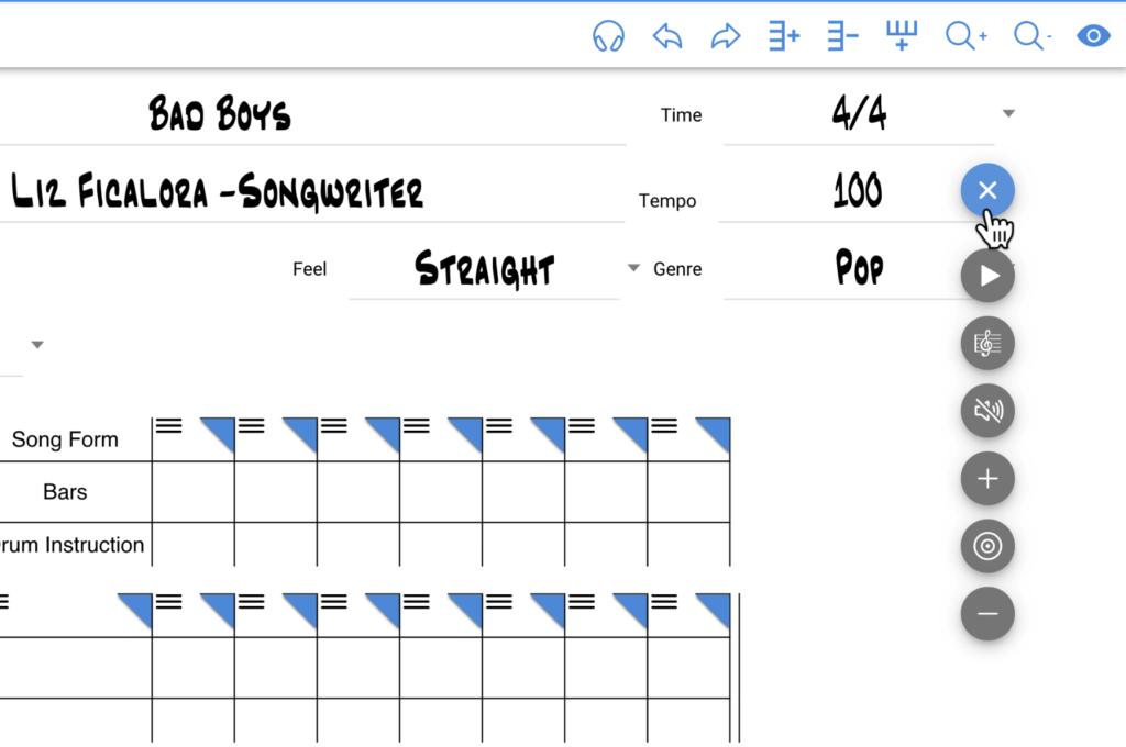 In your new chart, select the metronome icon to open the control dropdown menu.