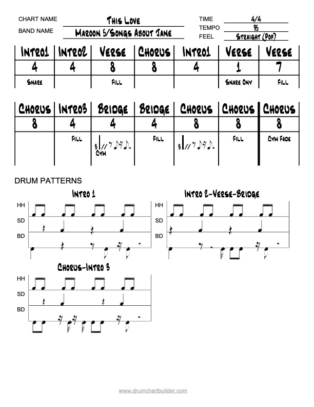 Read and Play a Chart-Pop By drumchartbuilder | April 3, 2025 This LoveBy Maroon 5Play along with your track of This Love by Maroon 5 12 This LoveDownload Posted in READ A CHART AND PLAY ALONG and tagged Drum Chart, Drum charting, drum music, this love ← Read and Play a Chart-AmericanaRead and Play a Chart- 80’s Pop → About drumchartbuilder CEO and Designer of Drum Chart Builder Software, Musician, Teacher, producer, engineer. View all posts by drumchartbuilder →